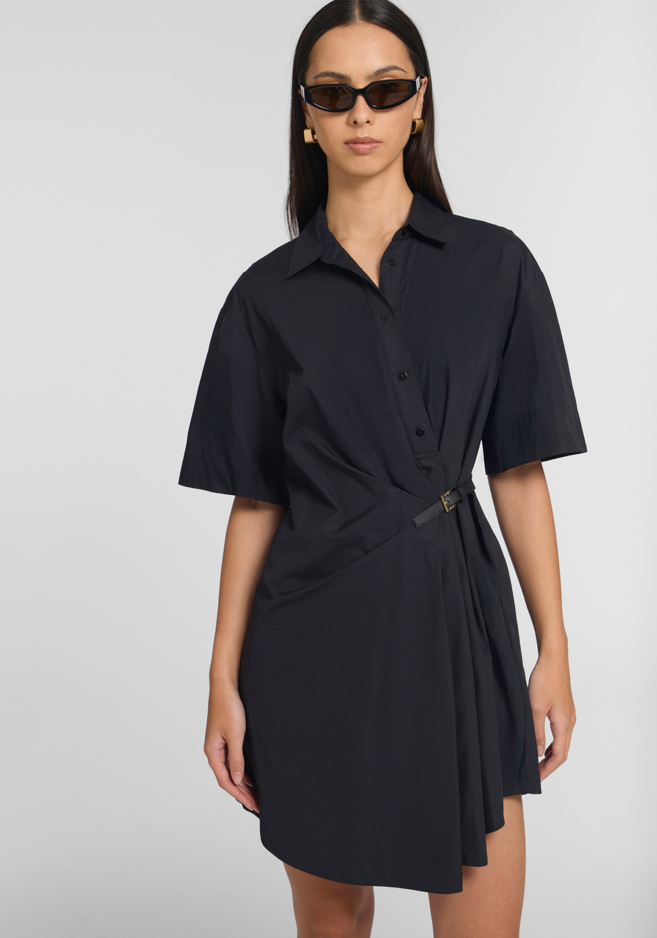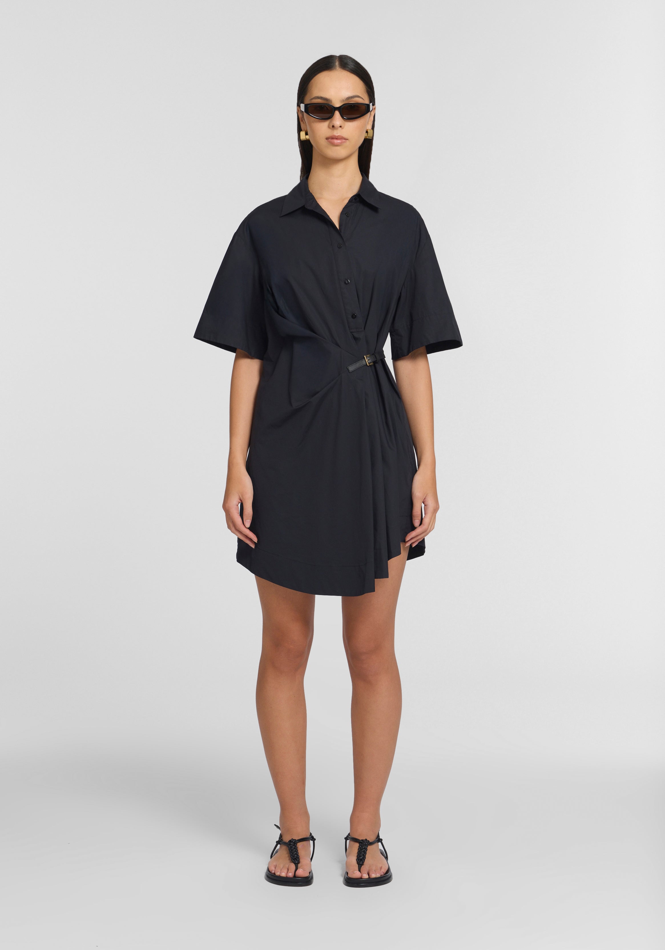 The Peaches Shirt Dress reimagines our best-selling Scorpius Dress, realised in soft, structured cotton, a vision of refined utility. Showcasing a relaxed short-sleeve mini dress silhouette with a collar, curved shirt tail hem, and an adjustable belt with a branded gold buckle. A go-to this season for work, holidays, and all the moments in between, its constructed form exemplifies considered ease.