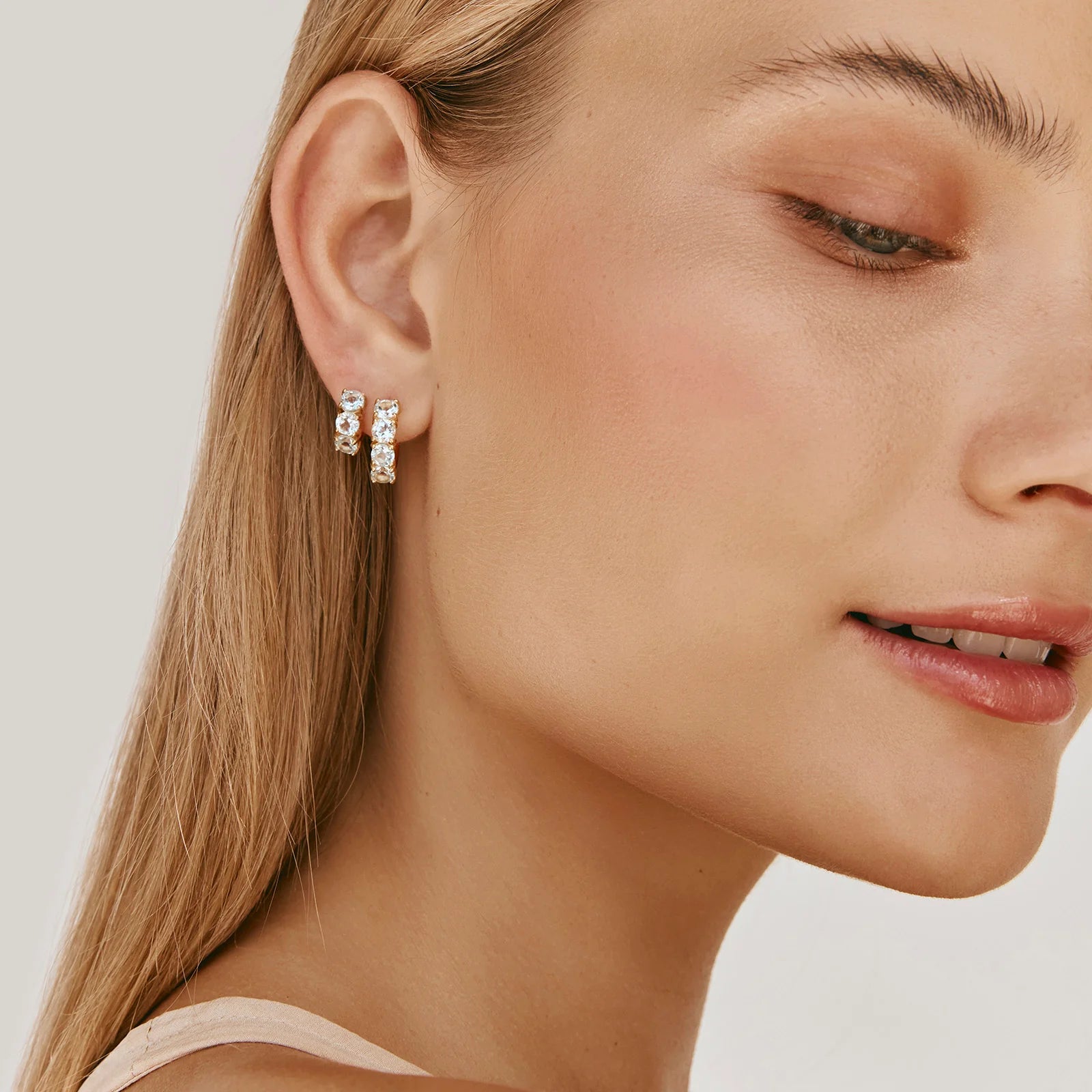 Add a touch of understated elegance to your everyday look with the Blue Topaz Huggies. Crafted in high-polish 18k gold-plated sterling silver, these delicate earrings feature dazzling blue topaz gemstones—known for their clarity and calming energy. The huggie-style design ensures a snug, comfortable fit that hugs the earlobe perfectly, making them ideal for stacking or wearing solo.