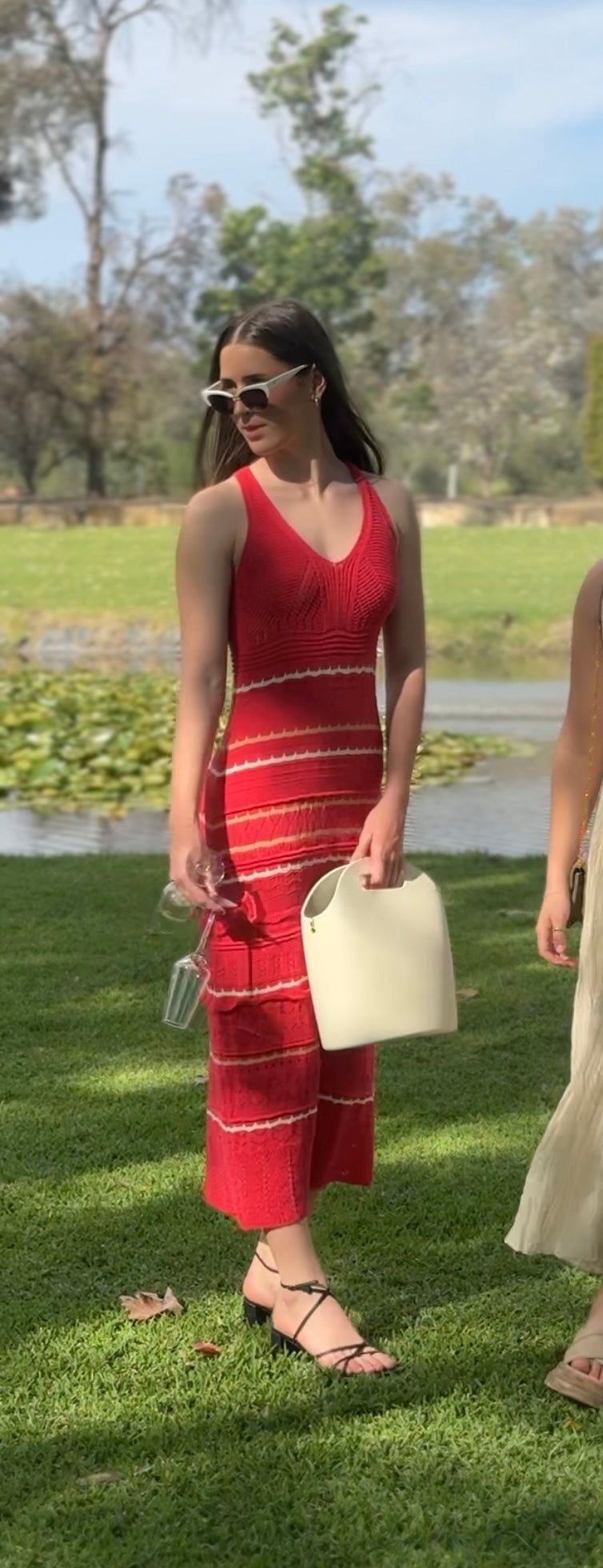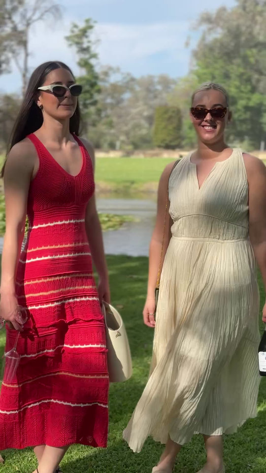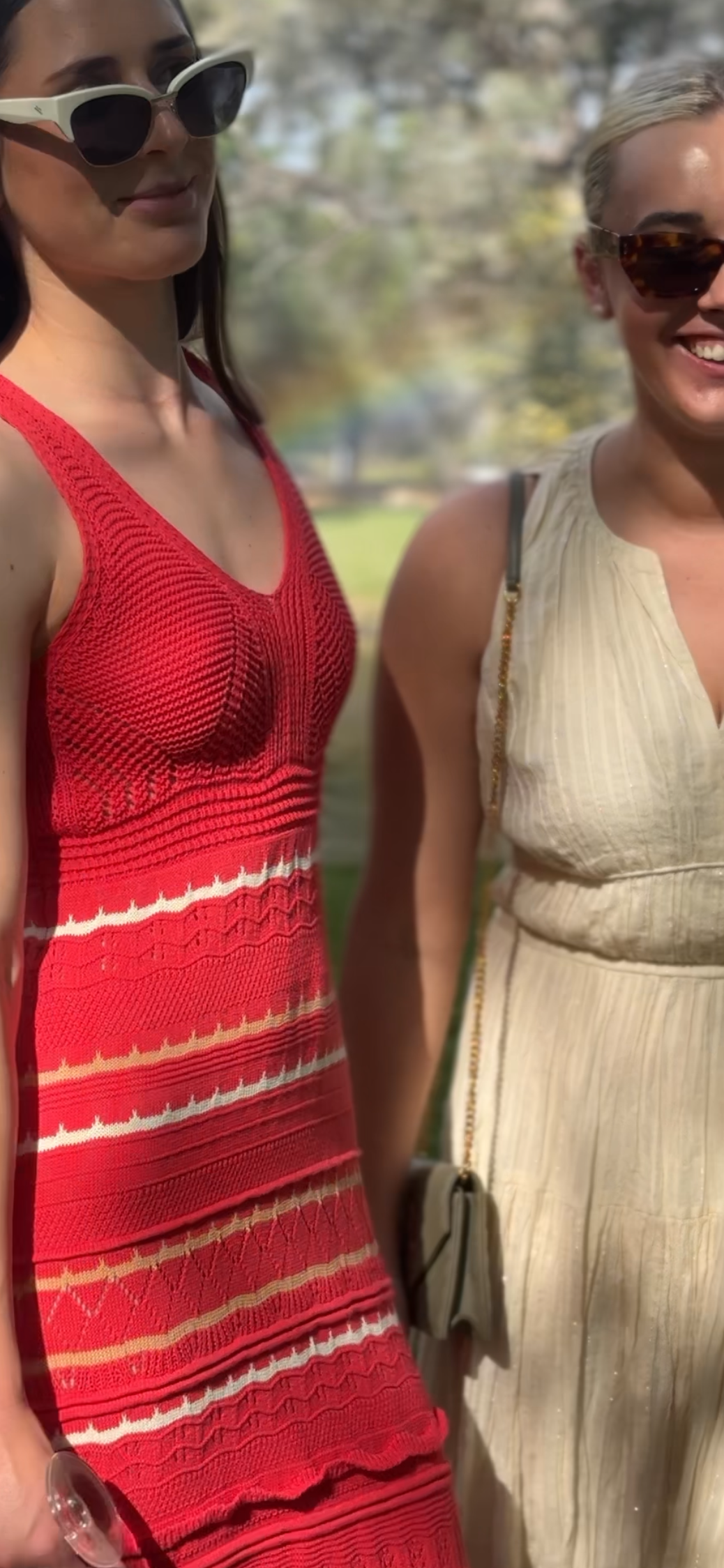 Flaunt your style with the Long Knitted Dress by Sita Murt. The midi length and openwork design offer a playful twist, while the flame color with ecru highlights adds a unique touch. Made in Barcelona, this dress is sure to make a statement.