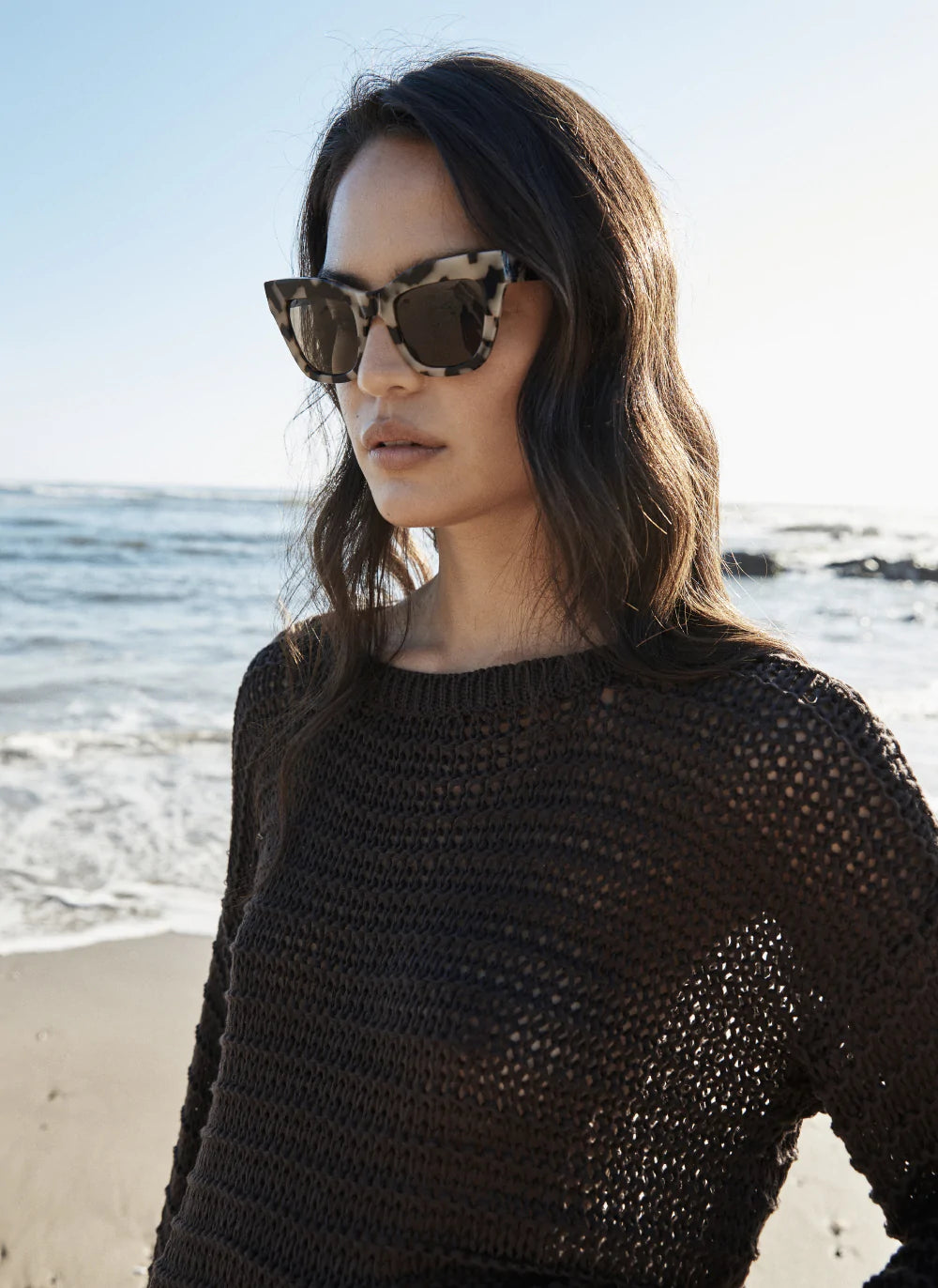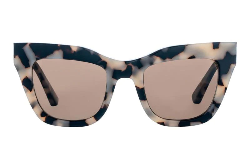 Crafted from glossy acetate, the Dusk features a slightly angular and exaggerated cat-eye silhouette for the modern-day wearer.  Fitted with our signature polarised lenses, you will find our icon detailed in gold at the temples.