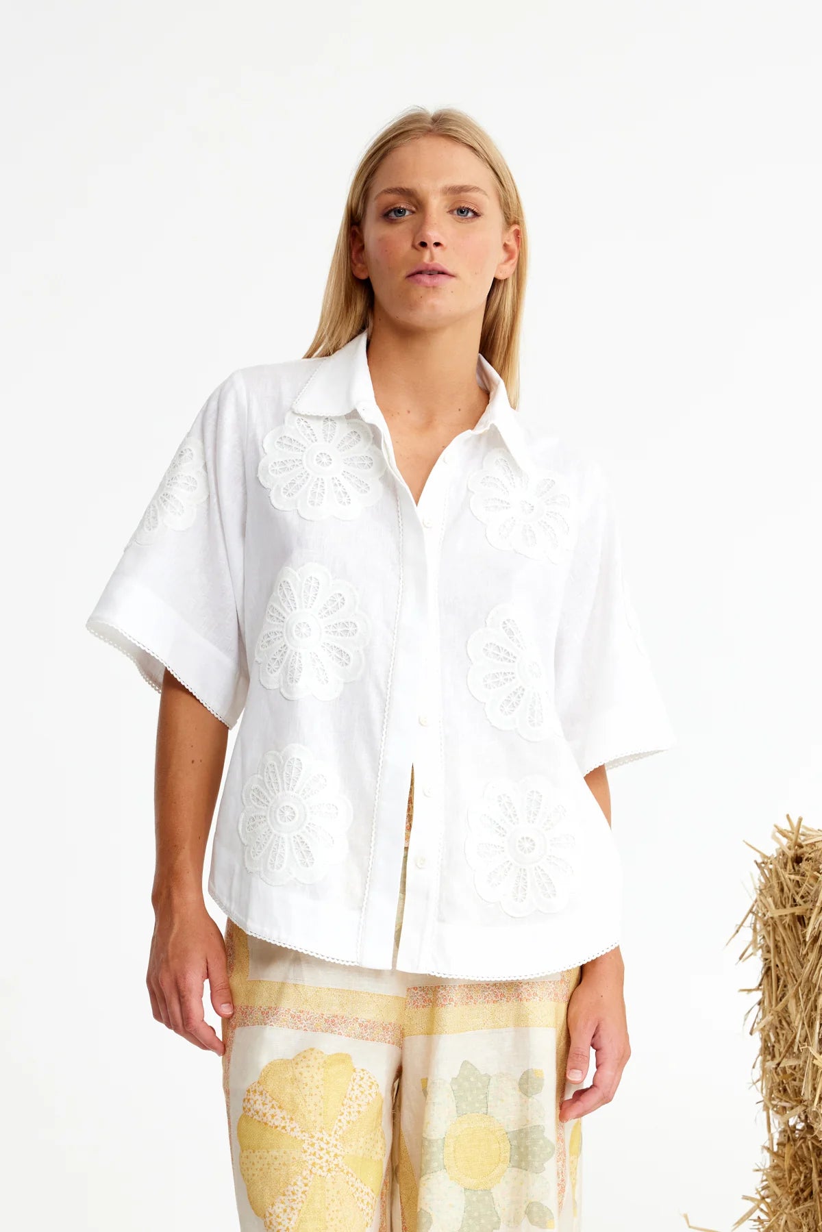 Like the famous dancing breed it’s named for, this shirt is all about graceful, controlled showmanship. Just like you managing work, life, family with aplomb. Crisp linen with circles of crochet appliqués, it adds polish & something special. Spill the high tea and giddy-up, darling, we have done this one before as its such a winner. Get it in both colours. (Sky Blue & White.) Tick.