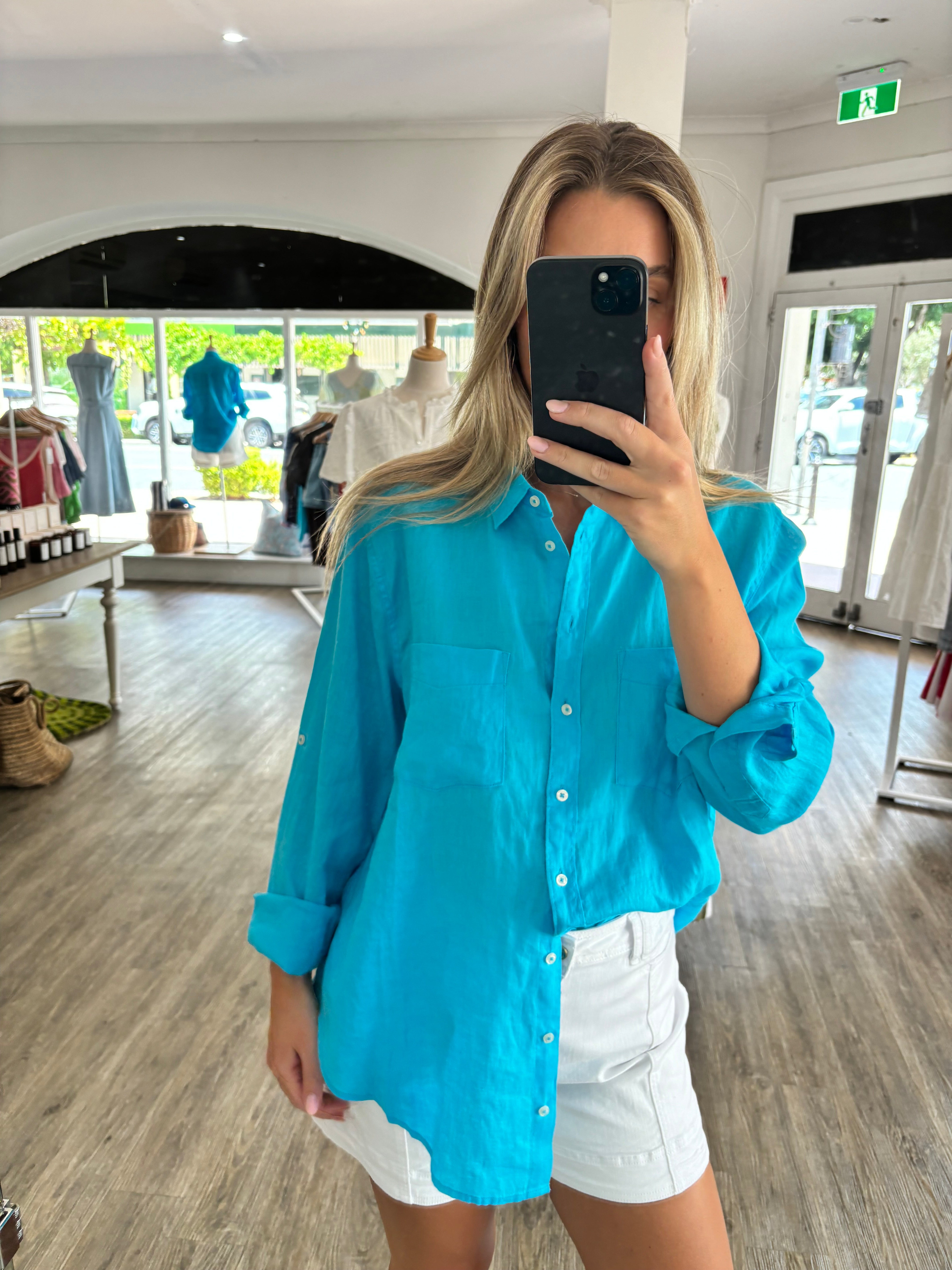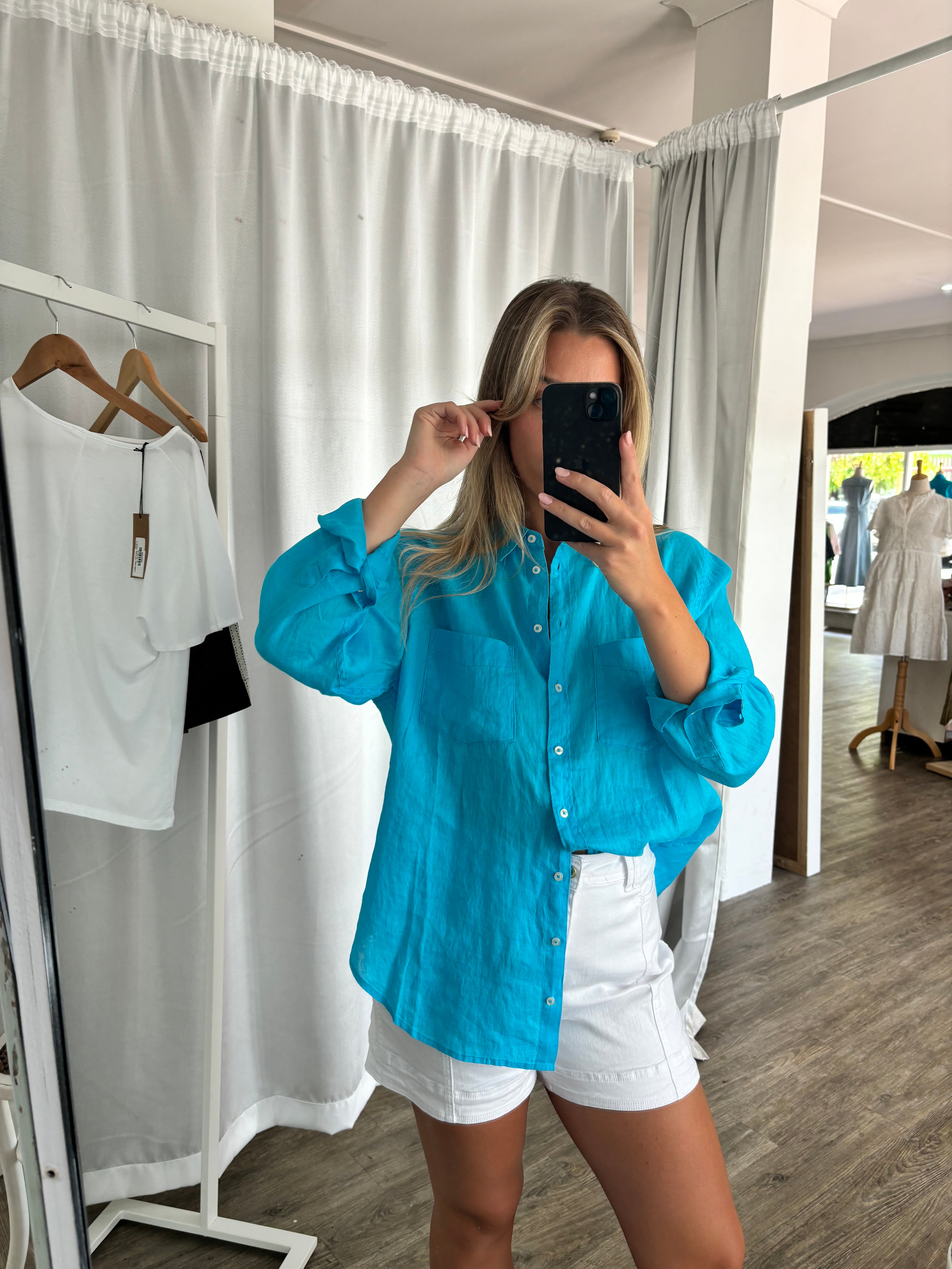 Reef Blue Linen Top | HUT